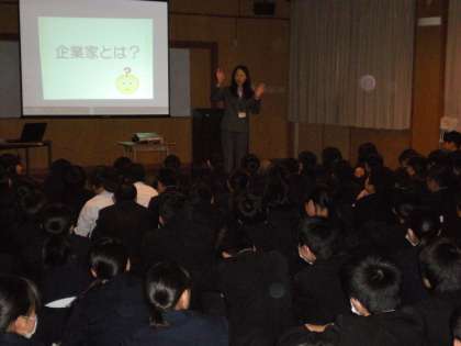 今日11月14日(金)5限目にキャリア教育の一環として、企業家ミュージアムの方にご講演いただき、将来について考えるよい機会を得ました。2年生の積極的な姿勢はご講演された方にもたいへん好感をもたれました。