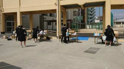 本日は、3年生を対象として、学習課題等の配布・回収を行いました。臨時休業中ではありますが、進路に向けて大切な1年です。希望する進路が実現できるよう、しっかりと学習を進めておいてほしいと思います。