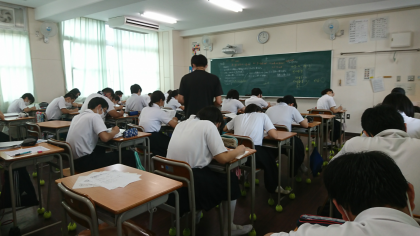 上の写真から1年2組英語(少人数授業)、2年2組数学、3年1組英語の授業の様子です。明日からテスト一週間前です。計画的に取り組んでいきましょう。