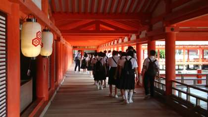 宮島に到着し、厳島神社を見学しています。