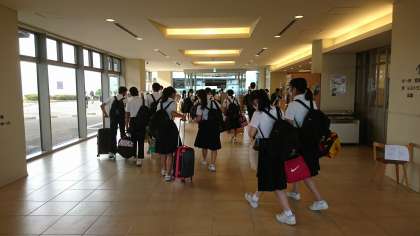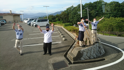 ホテルの方々に見送られ、ラフティング会場のある高知県大豊町に向けて出発しました。