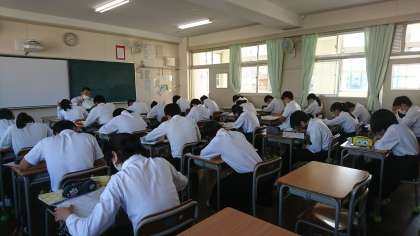 本日の6時間目、1年生は授業、2・3年生はテスト勉強を行いました。明後日から中間テストです。ベストを尽くして頑張りましょう。