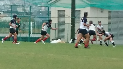 降りしきる雨の中での試合でしたが、序盤から相手チームを圧倒し、55−0で勝利しました。おめでとうございます。よく頑張りました!