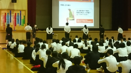 本日の午後、2年生は「着こなしセミナー」を行いました。本校の標準服を担当していただいている菅公学生服から講師の方に来ていただき、標準服の着こなしや社会人として必要な礼儀、マナーなどを説明していただきました。生徒の皆さんには、本日のお話を今後の生活に活かしていってほしいと思います。