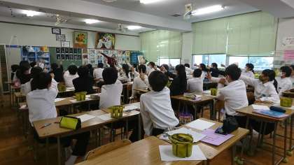 本日午後の授業風景です。上の写真から1年1組美術、1年4組数学、2年4組国語です。今週もあと一日、頑張りましょう。
