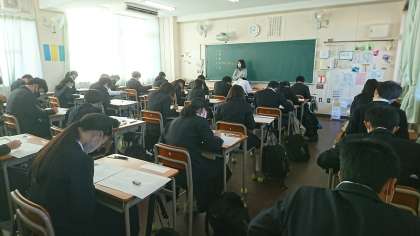 本日、3年生は実力テストです。写真は、1時間目の社会のテストの様子です。最後まで全力で頑張りましょう。
