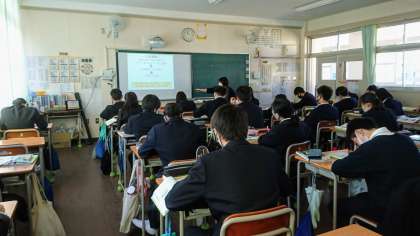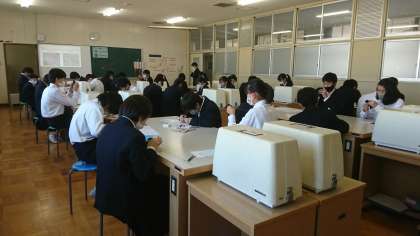 本日の授業風景です。上の写真から1年1・2組男子保健体育、2年1組家庭科、3年4組理科です。今週も今日で終わりです。来週も頑張りましょう。
