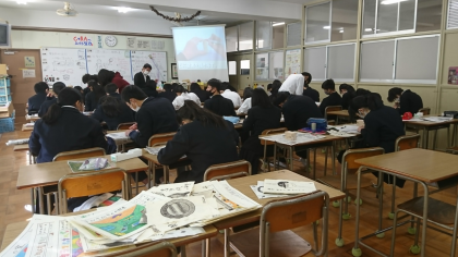 本日の授業風景です。上の写真から1年1組家庭科、2年2組音楽、3年3組美術(篆刻制作)です。寒さが厳しくなってきました。体調管理には十分気をつけてください。