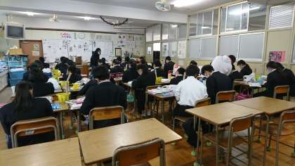 1年生の美術の授業の様子です。紙粘土を使って、本物そっくりのケーキを作っています。それぞれが工夫を凝らしながら自分だけの作品を作っていました。