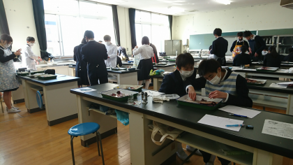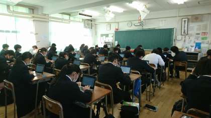 本日の授業風景です。上の写真から1年1・2組女子保健体育、2年5組技術、3年3組理科です。1・2年生の皆さん、テスト勉強は進んでいますか。計画的に取り組んでくださいね。