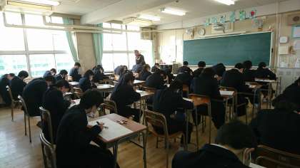 今日から1・2年学年末テストが始まりました。これまでの勉強の成果は発揮できたでしょうか。あと2日、最後までベストを尽くして頑張りましょう。