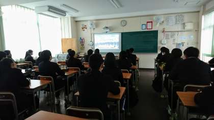 本日の5時間目、「お別れ会」を行いました。今年度の「お別れ会」は、感染症対策のため、1・2年生の各学級や学年で作成したDVDを流しての会といたしました。1・2年生は、これまでお世話になった3年生にDVDを通して感謝の気持ちを伝えました。3年生の皆さんの前途を在校生全員で祈っております。