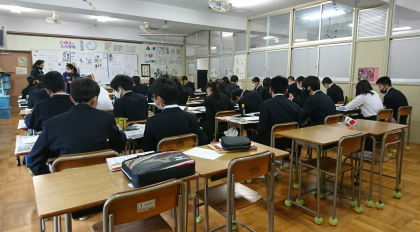 本日の授業風景です。上の写真から1年1組国語、2年2組国語、2年5組美術です。今年度の授業も明日で終わりです。最後まで頑張りましょう。