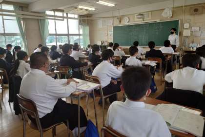 本日の授業風景です。上の写真から1年3組数学、2年4組理科、3年2組社会です。来週も元気に頑張りましょう。