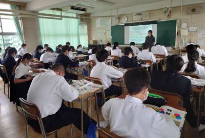 本日の授業風景です。上の写真から1年3組美術、2年3・4組男子保健体育(新体力テストの握力測定)、3年4組家庭科です。来週から通常授業です。体調管理に気をつけながら頑張っていきましょう。