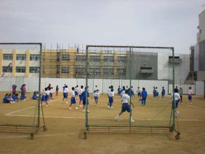 1年生最後の球技大会が3月6日(金)5・6限の時間に開催されました。寒さも少し和らぎ、工事中の校舎を背に男女それぞれにドッジボールに熱中していました。1組男子と3組女子が優勝、準優勝は2組男子と1組女子の結果となりました。