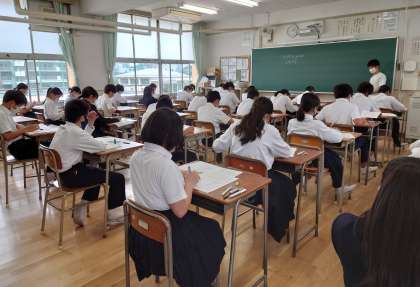 本日、2年生は国語と社会の確認テストを行いました。これまでの勉強の成果は発揮できましたか。明日は、数学・理科・英語の確認テストを行います。2年生の皆さん、頑張ってください!