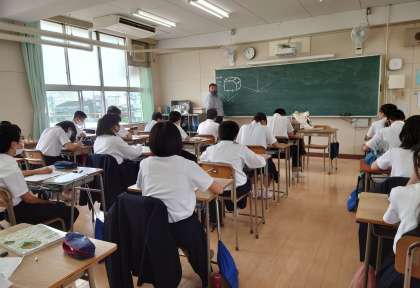 本日の午前中の授業風景です。上の写真から1年1組技術、2年2組国語(教育実習生の授業)、3年1組英語です。午後からの授業も頑張りましょう。
