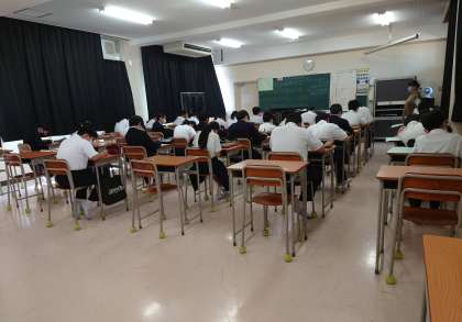 本日の1時間目の授業風景です。上の写真から1年3組音楽、2年4組理科、3年3組国語です。今日も授業にしっかりと取り組みましょう。