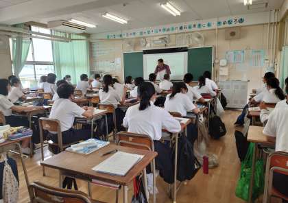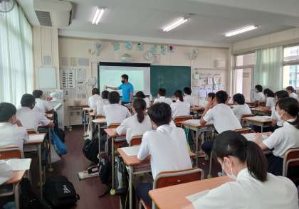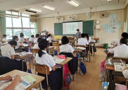 本日の授業風景です。上の写真から1年1組理科、2年2組英語、3年3組社会(実力テスト返しと解説)です。今週も頑張りましょう。