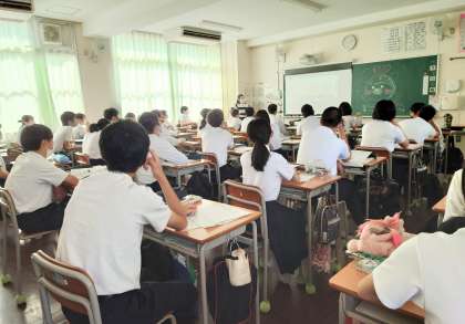 本日の授業風景です。上の写真から1年4組社会、2年3組数学(少人数授業)、3年1組家庭科です。1学期も残り1週間となりました。よい形で1学期を締めくくるためにも、最後まで頑張りましょう。