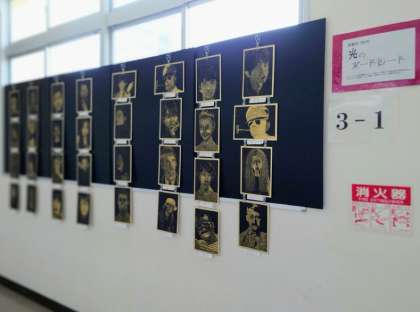 3年美術科作品「光のポートレート」と「大阪市立中学校総合文化祭への出展作品」です。