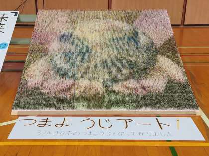 同じく3年学年作品の「パンチアート」と「つまようじアート」です。