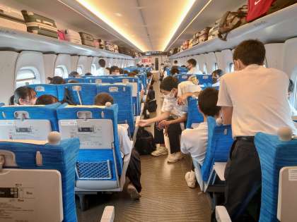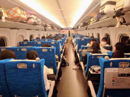 岡山駅に到着しました。同じく車内の様子です。