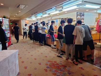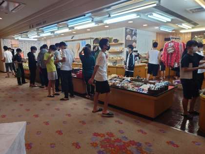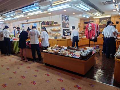 お土産購入の様子です。やはり一番人気は「もみじ饅頭」でしょうか。