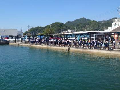 忠海港に到着し、大久野島に向けて乗船します。