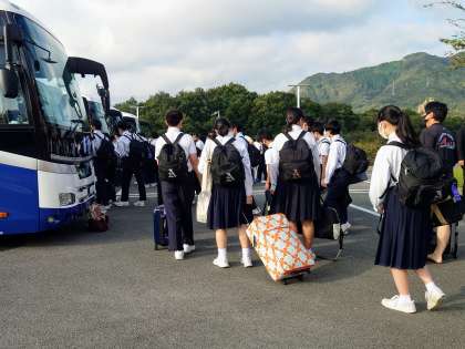 ホテルを出発しました。この後は、ラフティング会場に向かいます。