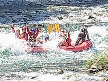 同じく、ラフティングの様子です。大歓声が響きわたっています。