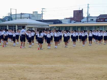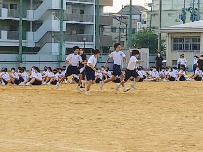 1年生の学年練習です。体育大会本番に向けて頑張っています。