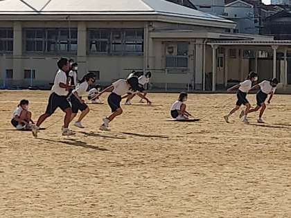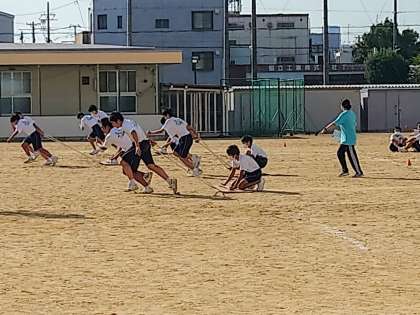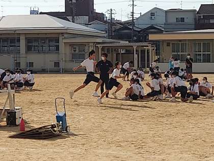 2年生の学年練習です。学級対抗リレーや学年種目の練習を行っていました。