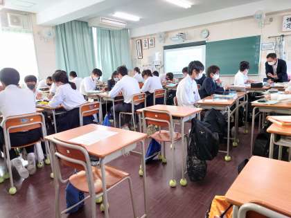 本日の授業風景です。上の写真から1年1組英語(少人数授業)、2年2組数学、3年5組理科です。朝夕も含め気温が下がってきました。季節の変わり目です。体調管理には気をつけましょう。