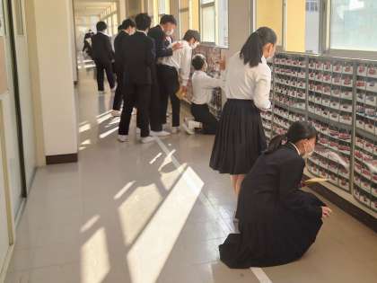 本日、修学旅行の写真販売を行いました。修学旅行は、生徒たちにとって中学校での大きな思い出の一つです。楽しそうに、あの3日間を懐かしむように写真を選んでいました。
