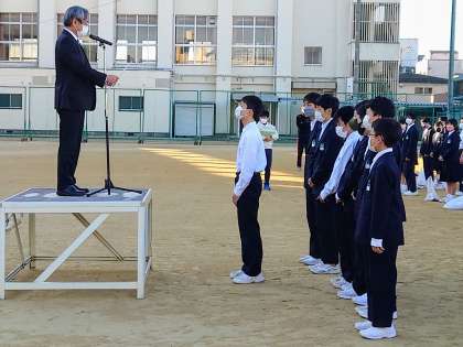 同じく全校集会の中で、「第2ブロック新人交流大会」において、男子団体の部で準優勝を果たされた卓球部の表彰を行いました。おめでとうございます。よく頑張りました!