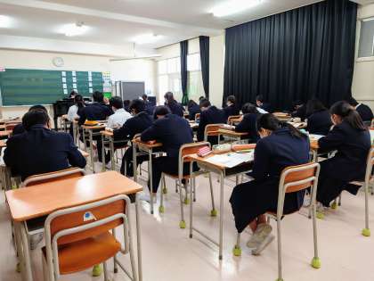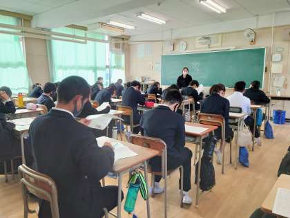 本日の授業風景です。上の写真から1年3組社会、2年3組音楽、3年3組理科です。今週も頑張りましょう。