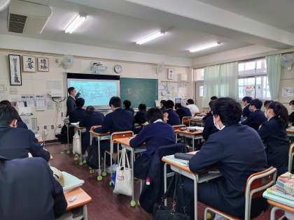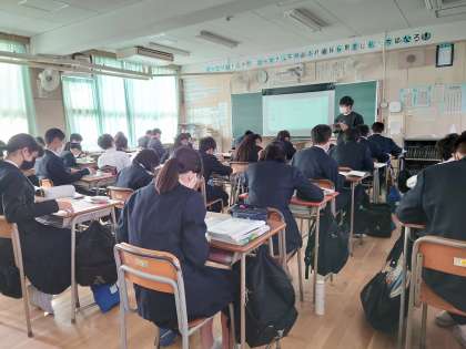 本日の授業風景です。上の写真から1年2組社会、2年2組国語、3年5組理科です。本日から1・2年生の懇談も始まり、全学年午前中授業となります。午後からの時間を有効に使ってください。