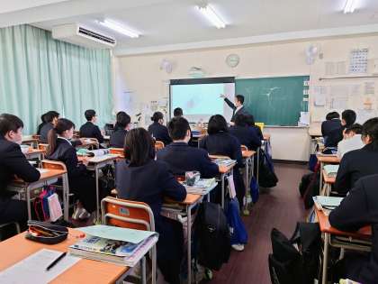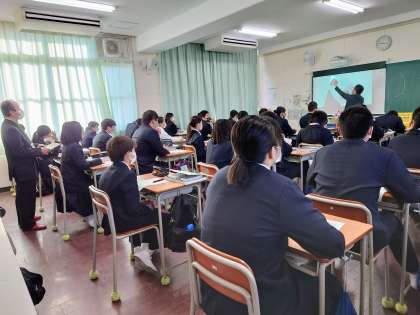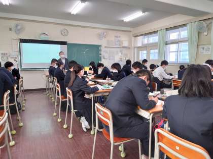 本日、大阪市教育委員会の「学力向上推進事業」の一環として、学力向上推進委員の先生が来校され研究授業を行いました。授業見学の後、指導助言をしていただきました。これからも生徒たちの学力向上および教員の授業力向上に取り組んでまいります。