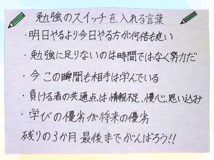 学年末テスト2日目が終わりました。3年生の皆さん、これまでの勉強の成果を十分に発揮できたでしょうか。あと1日、最後まで頑張りましょう。