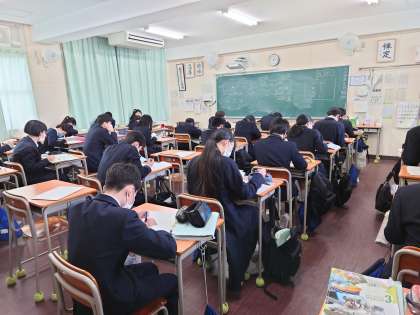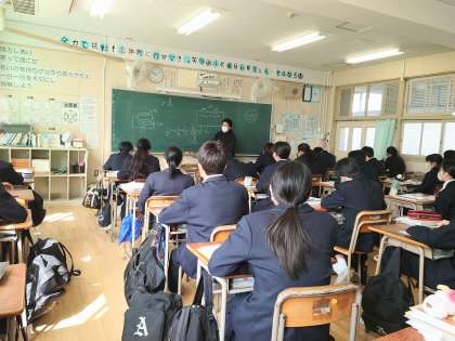 本日の授業風景です。上の写真から1年2組美術(紙粘土を使って「お弁当」作り)、2年2組理科、3年5組理科です。早いもので、卒業式まで約2週間となりました。残りの日々を大切に有意義に過ごしてほしいと思います。