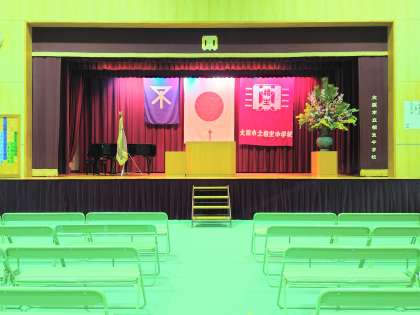 午後からは、1・2年生が一生懸命に卒業式の準備を行ってくれました。今、静かな体育館は、明日の卒業式の主役である3年生の出番を待っています。
