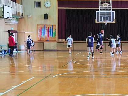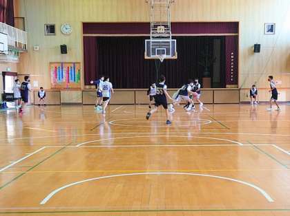 男子バスケットボール部の練習風景です。卒業生たちが来て、一緒に練習していました。