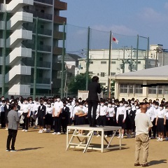 また、学校長から「修学旅行はマナーと思いやりを持った、良い修学旅行でした。今日からは体育大会に向けて、運動が得意な人も、そうでない人も自分自身の持っている力を発揮することが大切です。」と話しました。