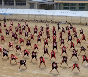 3年生の集団演技ソーラン節は必至の練習で、完成間近です。