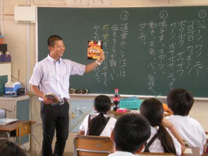 6月24日と25日に片江小学校と神路小学校へ、小中連携の一環として中学校の先生が授業をしに行きました。今回は、理科と国語の授業を行いました。中学校の先生のユーモアあふれるわかりやすい授業に、最初は緊張していた小学生もだんだん打ち解け、積極的な発言も多く見られるようになりました。次回は2学期に行います。