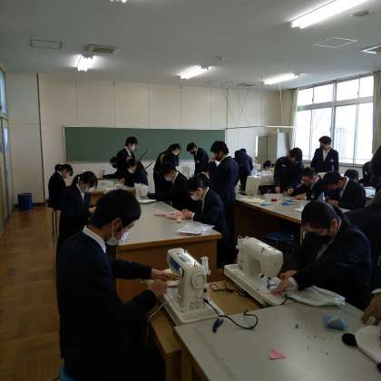 各班とも互いに教えあいながら、上手に電動ミシンを使って製作しています。