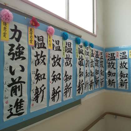 1年生の国語(書写)の授業で学習した作品を校内に展示しました。