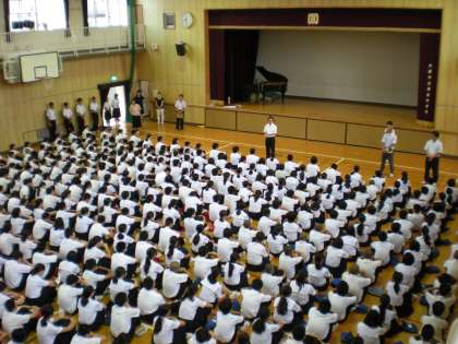 今日の始業式では、各クラブが夏休み中に勝ち取った賞の表彰式が行われました。